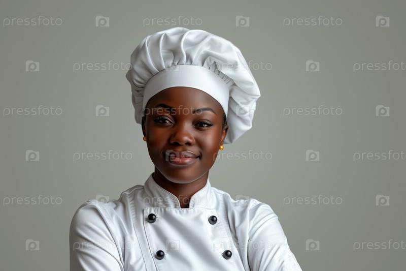 Молодая афроамериканка-повар в белой униформе и шляпе