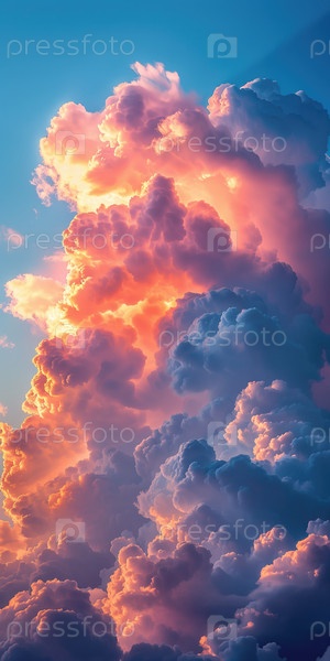 Вертикальный фон, драматическое закатное небо со светящимися облаками