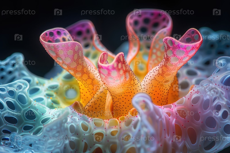 Фантастическая форма жизни, цветное фотореалистичное изображение морского организма крупным планом