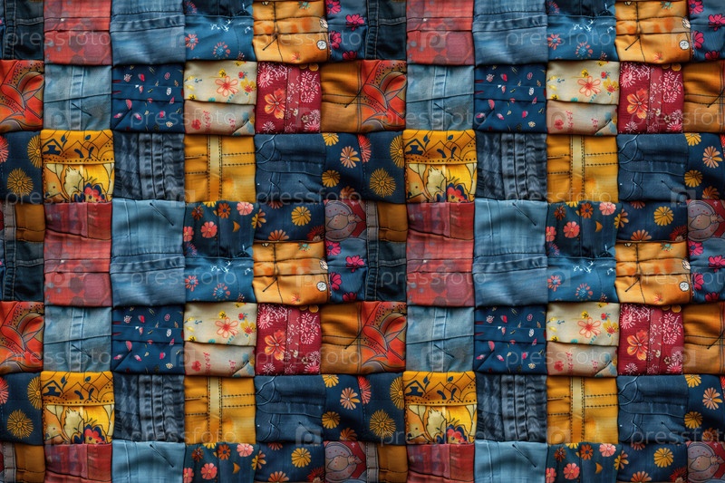 Бесшовный текстильный фон, красочное лоскутное одеяло из кусочков ткани