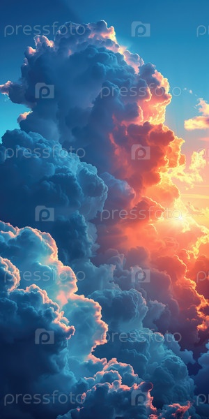 Вертикальный фон закатного неба с облаками и солнечными лучами, природная композиция