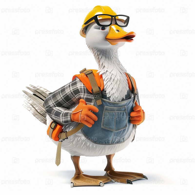 Гусь, работающий инженером. Понятие гусей разных профессий. Рабочий, инженер, строитель