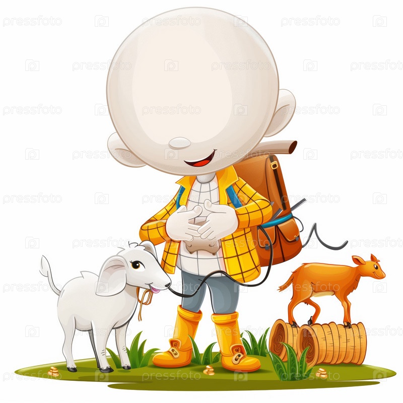 Стикмен заботится о животных на ферме, изолированный на белом фоне
