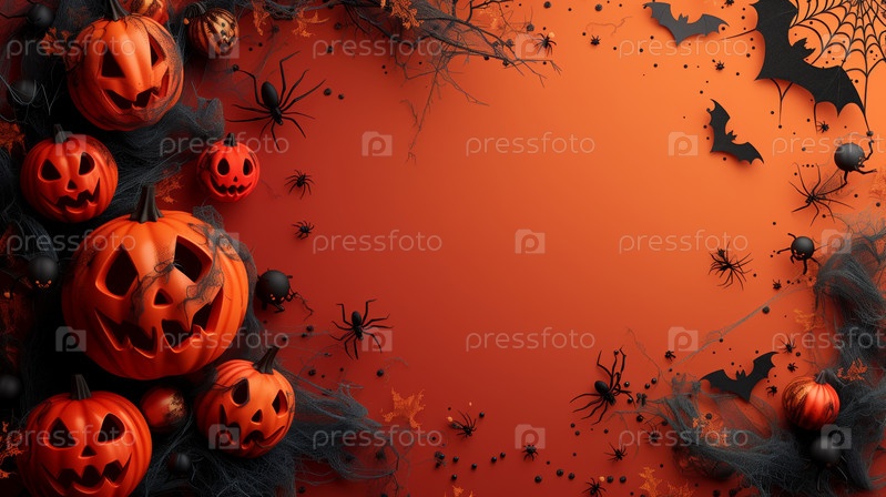 Фон на Хэллоуин с тыквенными фонарями и жуткими украшениями