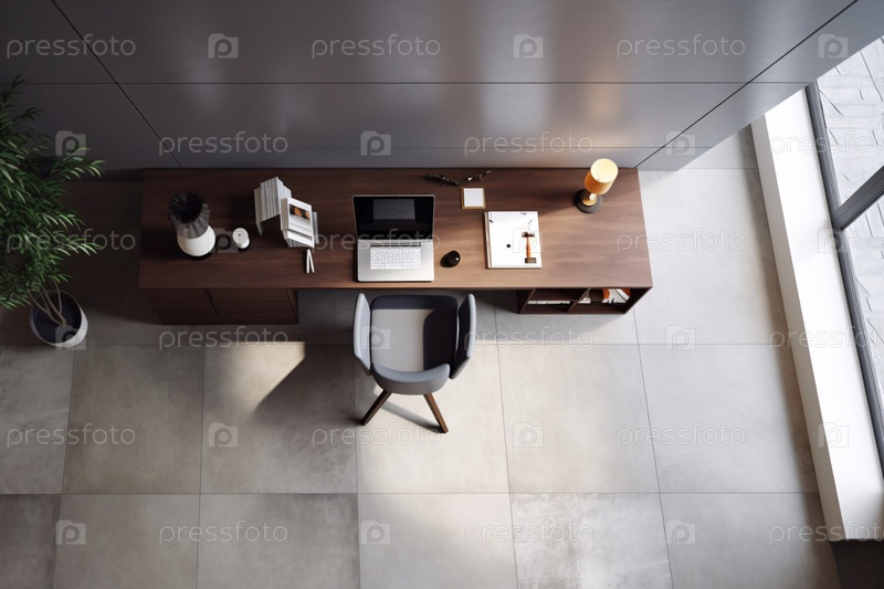Современное минималистичное офисное рабочее пространство с организованным столом и ноутбуком