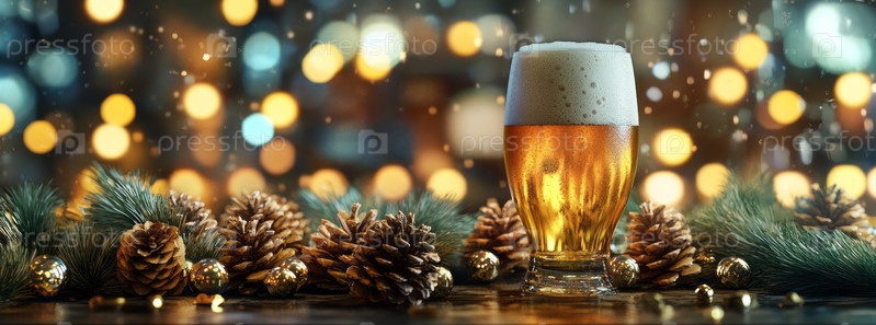 Зимний вечер в уютном пивном баре в праздничном декоре