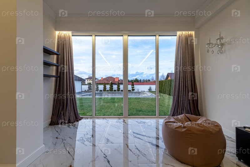 Роскошная гостиная с панорамным видом на сад