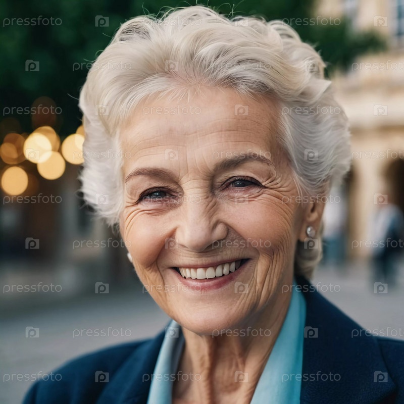 Утонченная улыбающаяся пожилая француженка на открытом воздухе. манера поведения раскрывает жизненный опыт и размышления, воплощая изящество и мудрость. ухоженная женщина 70 лет с седыми волосами
