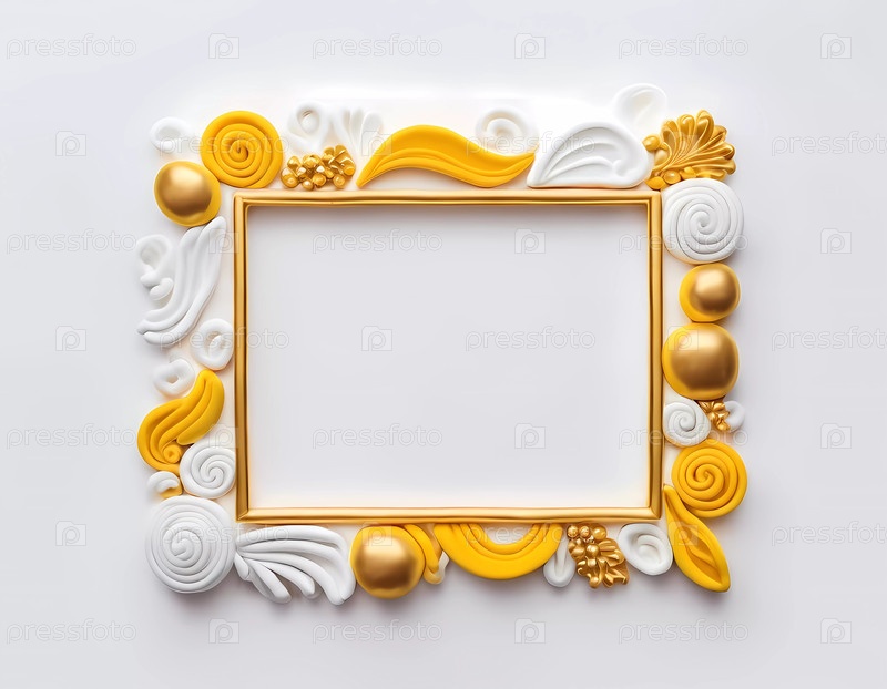 Эта декоративная прямоугольная рамка украшена элегантными белыми и золотистыми элементами, которые подчеркивают ее эстетическую привлекательность. Она идеально подходит для демонстрации дорогих сердцу воспоминаний или произведений искусства