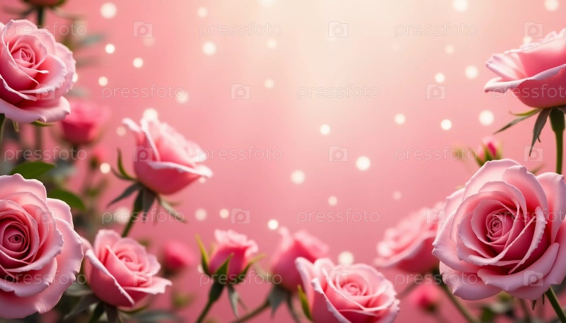 Нежные розовые розы грациозно цветут, окруженные очаровательными огнями боке, танцующими на мягком фоне, идеально подходящими для выражения привязанности и тепла в особые случаи. Генеративный искусственный интеллект