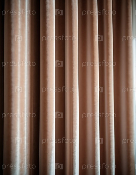 Занавес с мягкими плавными стекающими складками. Глубокий бежевый цвет и роскошная текстура создают драматическую и элегантную атмосферу. Декор и дизайн интерьера. Дорогая занавес из богатой ткани. AI