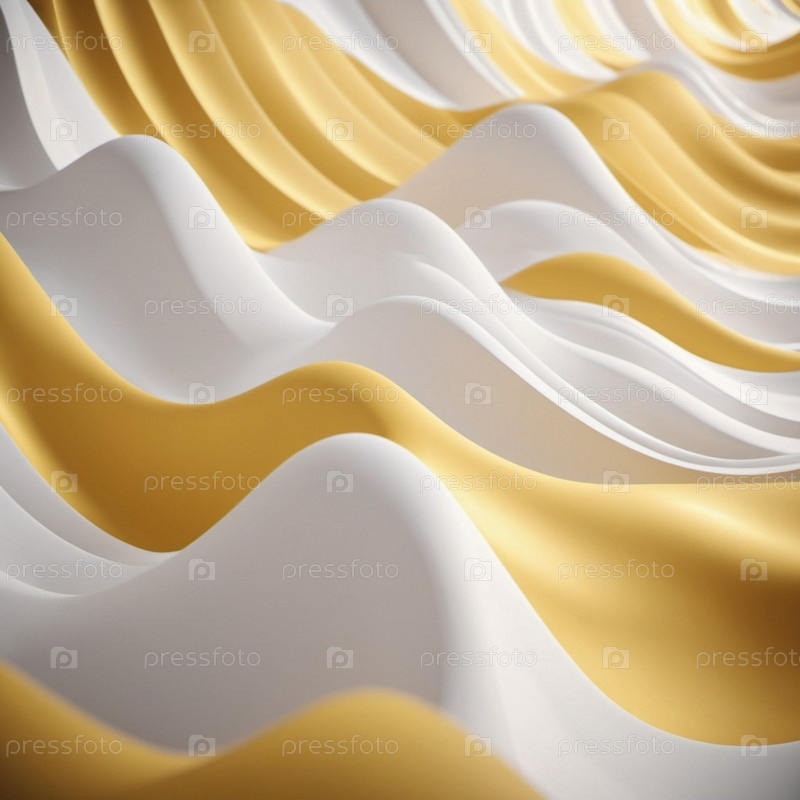 Композиция представляет собой плавные 3D-волны белого и желтого цвета, создающие гармоничное сочетание цветов и динамических форм, идеально подходящих для художественного вдохновения