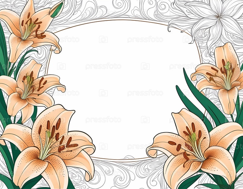 Красиво иллюстрированная рамка с яркими оранжевыми лилиями, окруженными замысловатыми узорами, идеально подходит для приглашений или художественных работ, придавая нотку элегантности. Генеративный ИИ