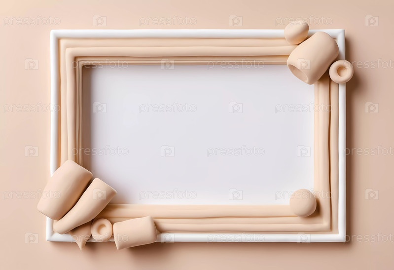 Игривая композиция из белого и бежевого пластилина образует художественную рамку на мягком фоне, демонстрируя креативность и фантазию в дизайне