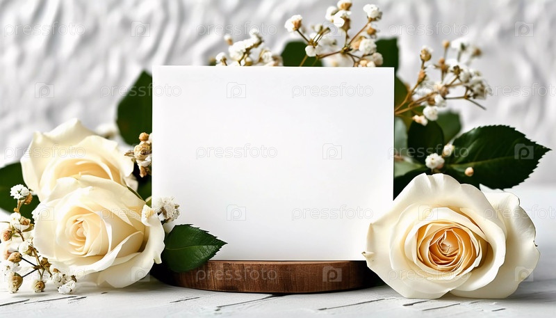 Нежные белые розы и мягкие бутоны создают элегантную рамку вокруг пустой открытки, идеально подходящую для личных сообщений или декоративных целей на любом мероприятии. С днем рождения, днем матери, днем святого Валентина. Генеративный ИИ