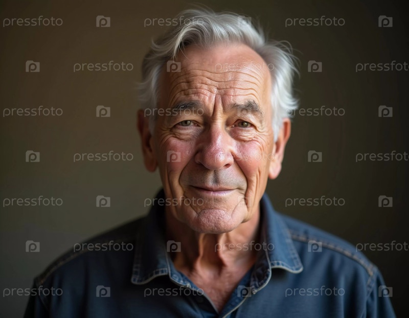 Пожилой мужчина, житель США, с седыми волосами, сияет от радости, демонстрируя свою дружелюбную манеру поведения в повседневной одежде. Теплая внутренняя обстановка усиливает его привлекательную улыбку. Генеративный ИИ