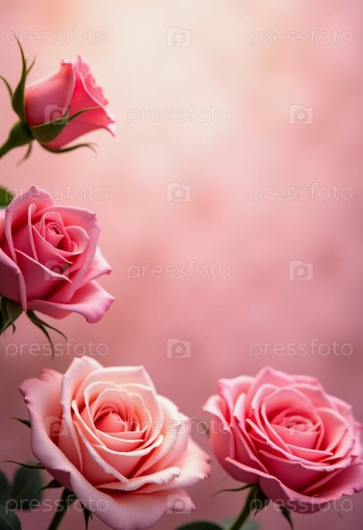Нежные розовые розы, яркие и красочные, покоятся на мягко размытом фоне, создавая безмятежную атмосферу, идеальную для выражения любви и радости. Генеративный ИИ
