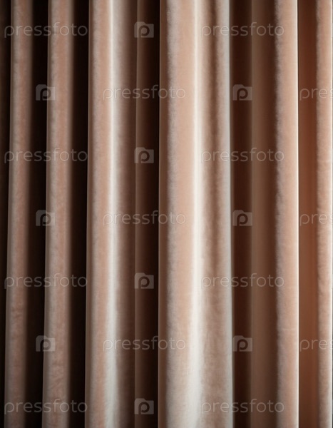 Занавес с мягкими плавными стекающими складками. Глубокий бежевый цвет и роскошная текстура создают драматическую и элегантную атмосферу. Декор и дизайн интерьера. Дорогая занавес из богатой ткани. AI