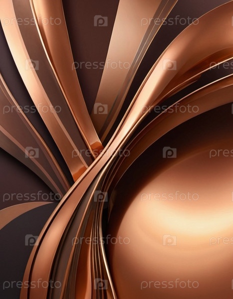 Крупный план бронзовой поверхности с градиентом, изогнутыми линиями и тонкими отражениями света.Текстура бронзы гладкая и металлическая, что создает визуально захватывающее абстрактное изображение