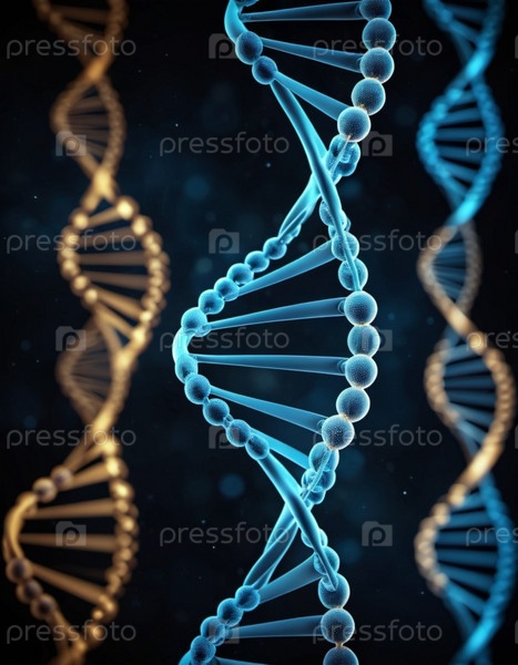 Изучение динамического генетического холста с абстрактными перспективами цепей ДНК, освещенных на темном фоне. Генеративный ИИ
