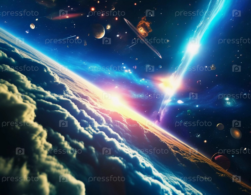 Вселенная космос пространство и время. Космические объекты планеты звезды свечения кометы туманности спутники и метеориты. Гравитационно связанная система межзвездного газа, пыли и темной материи, галактики. ИИ