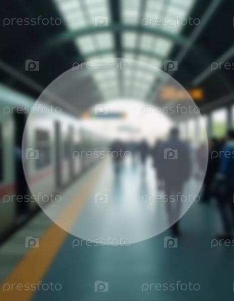 Пассажиры перемещаются по просторному вокзалу, окруженному полупрозрачным космическим фоном, ожидая свои поезда ярким утром, сливаясь с атмосферой. Генеративный ИИ
