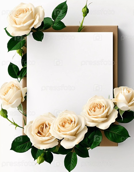 Нежные белые розы и мягкие бутоны создают элегантную рамку вокруг пустой открытки, идеально подходящую для личных сообщений или декоративных целей на любом мероприятии. С днем рождения, днем матери, днем святого Валентина. Генеративный ИИ