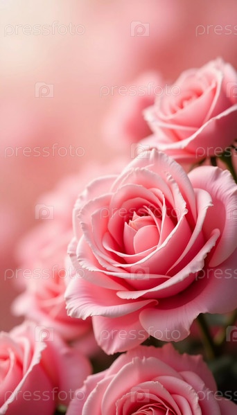 Прекрасная композиция из нежно-розовых роз на фоне мечтательного боке, идеально подходящая для выражения привязанности и заботы на пустом дизайне открытки. Генеративный искусственный интеллект