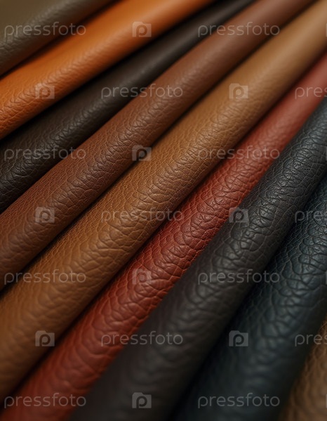 Различные образцы натуральной коровьей кожи лежат на плоской поверхности, демонстрируя насыщенные цвета и текстуры, идеально подходящие для мастеров и дизайнеров, ищущих уникальные материалы для своих проектов