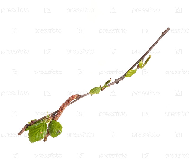 Ветка растения с почками и маленькими листьями, изолированная на белом фоне