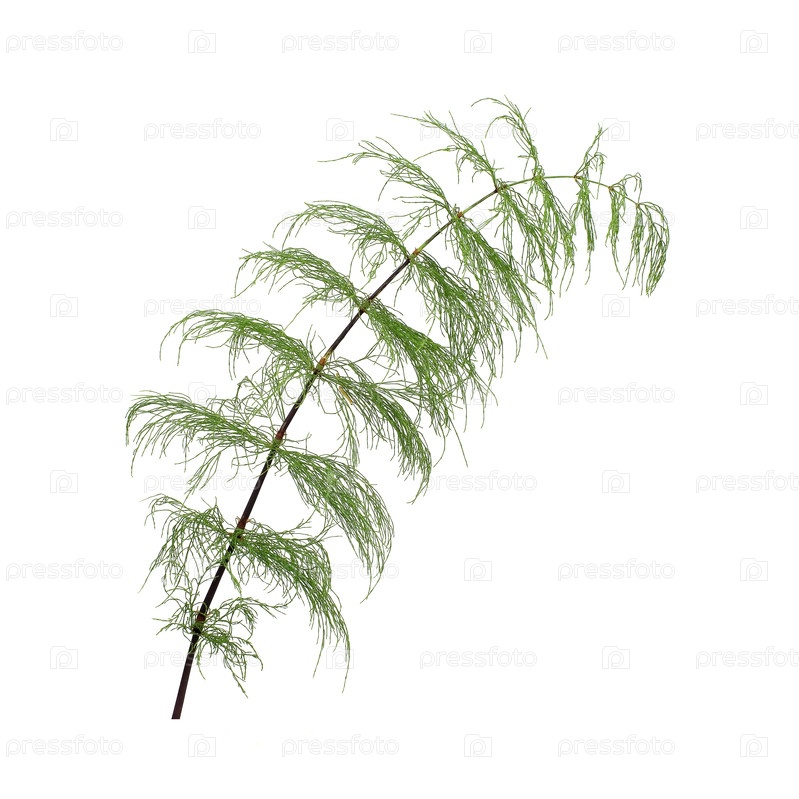 Зеленая ветка хвоща, изолированная на белом фоне