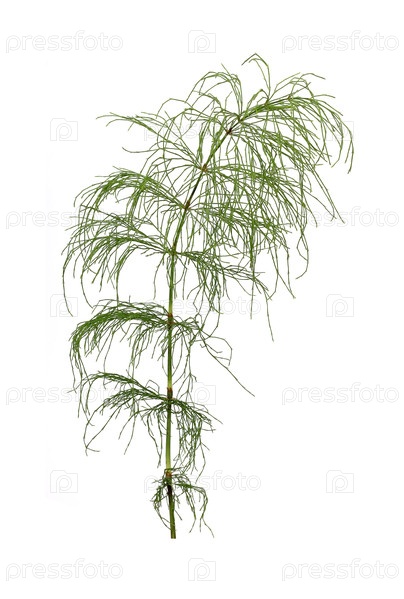 Зеленая ветка хвоща, изолированная на белом фоне
