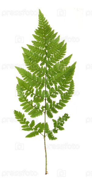 Зеленая ветка папоротника, изолированная на белом фоне