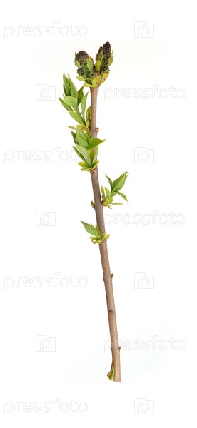Ветка растения с почками и маленькими листьями, изолированная на белом фоне