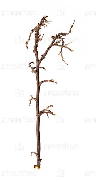 Ветка растения без листьев, изолированная на белом фоне