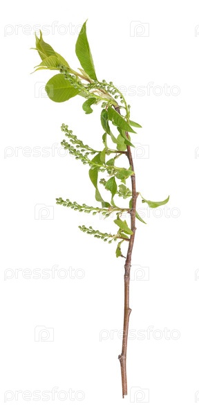 Ветка растения с почками и маленькими листьями, изолированная на белом фоне