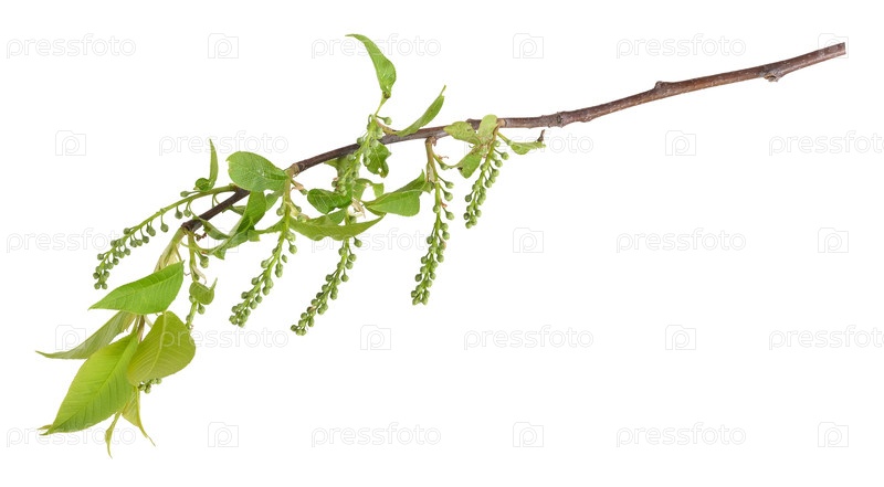 Ветка растения с почками и маленькими листьями, изолированная на белом фоне