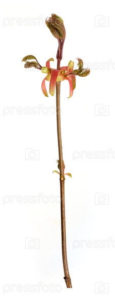 Ветка растения с почками и маленькими листьями, изолированная на белом фоне