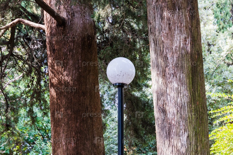 Уличный фонарь между деревьями. Санаторий «Кирова». Ялта. Крым