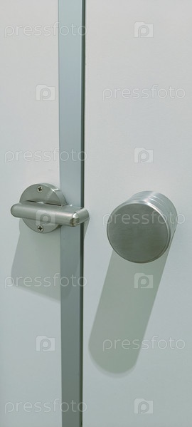 Дверная ручка из нержавеющей стали установлена на свежей белой двери, демонстрируя чистый и современный дизайн. Гладкая отделка создает изысканный вид, подходящий для современных интерьеров