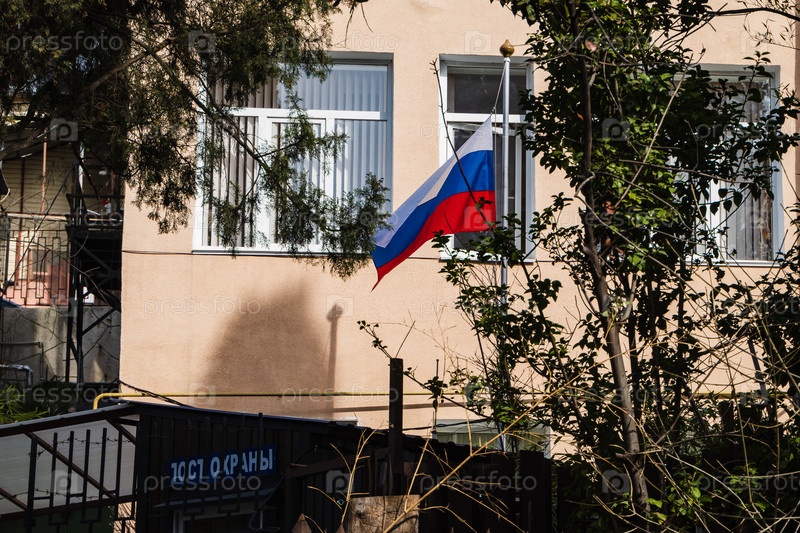Городской пейзаж. Флаг России. Улица Кирова. Ялта. Крым