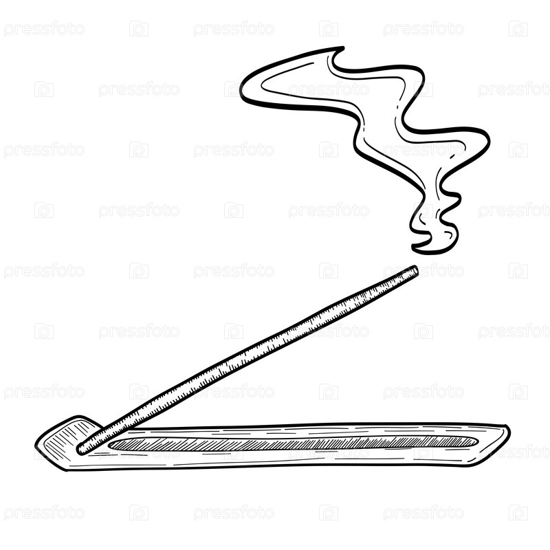 Минималистичный рисунок ароматической палочки, испускающей струящийся дым, идеально подходит для йоги, оздоровления, медитации, духовных ритуалов и мирного дизайна интерьера