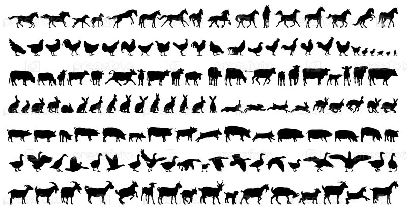 Большой набор силуэтов фермерских животных