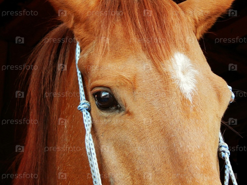 Голова рыжей лошади с акцентом на глаза и лоб