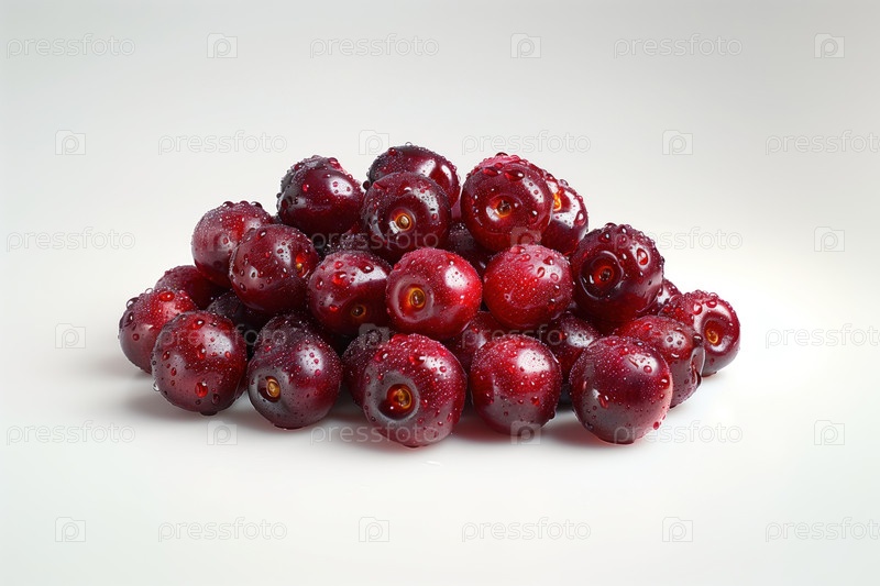 Спелые вишни без ножки на белом фоне. Крупный план