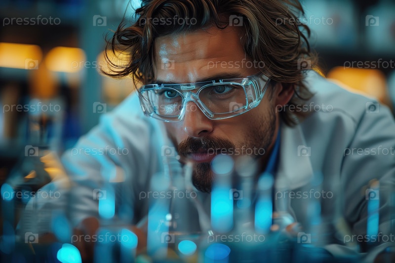 Портрет мужчины-исследователя, проводящего научные исследования в лаборатории
