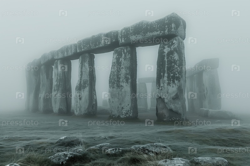 Древний мегалитический кромлех морозным утром