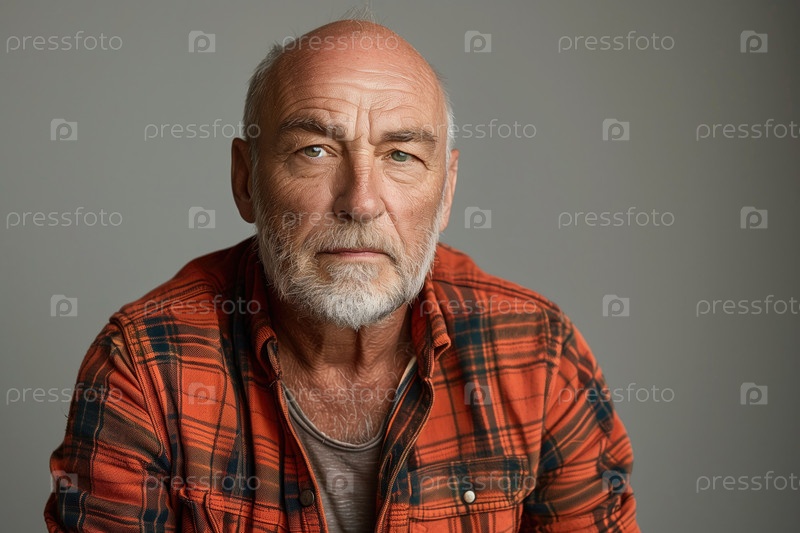 Портрет пожилого мужчины на сплошном сером фоне