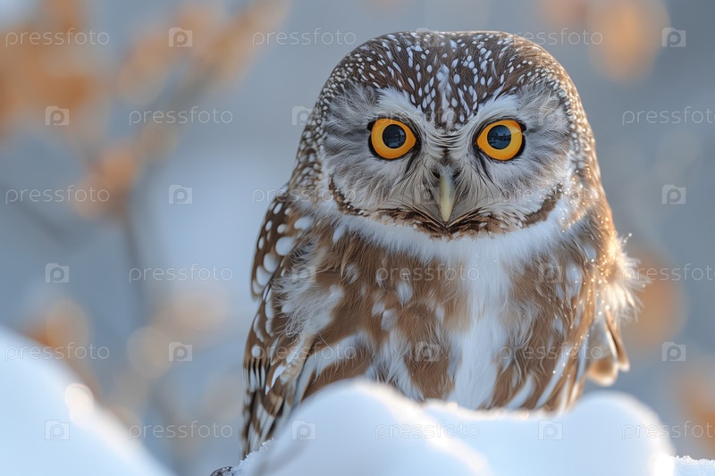 Крупный план пестрой неясыти (Athene noctua) зимой