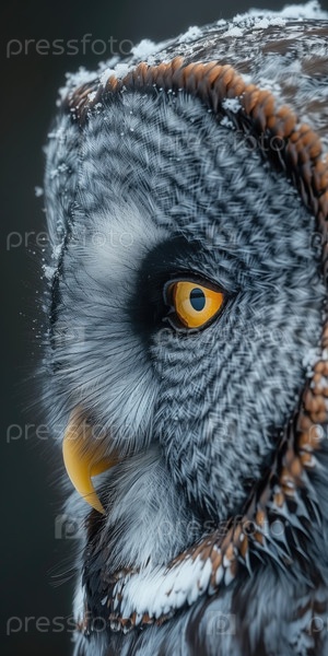 Вертикальный портрет большой бородатой неясыти, strix nebulosa